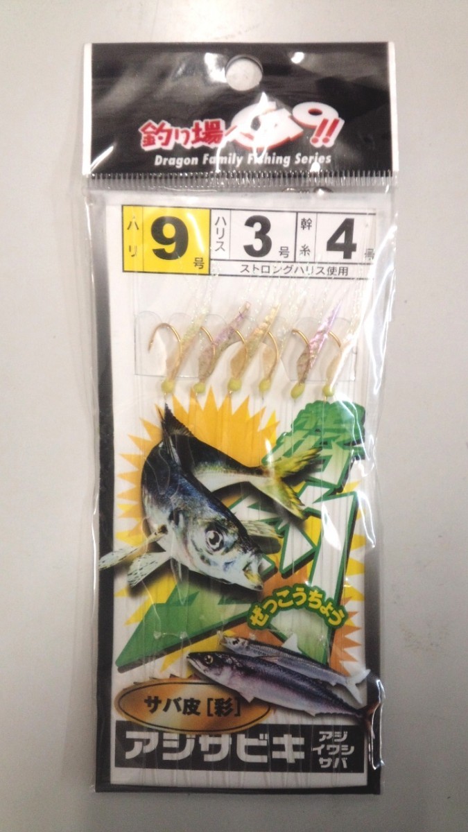 アジサビキ 絶好釣 サバ皮(彩) 9号 ハリス3号 幹糸4号 6本針 マルシン ドラゴン