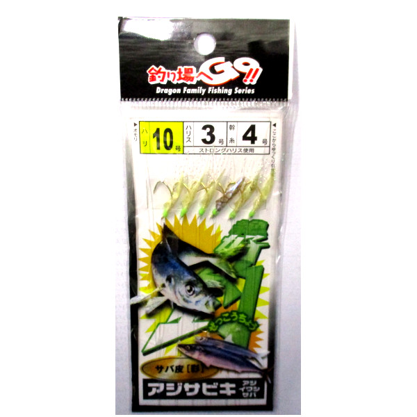 アジサビキ 絶好釣 サバ皮(彩) 10号 ハリス3号 幹糸4号 6本針 マルシン ドラゴン