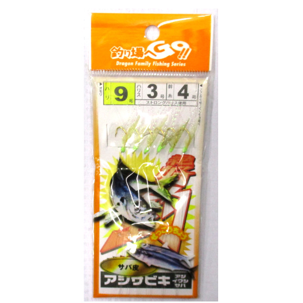 アジサビキ 絶好釣 サバ皮 9号 ハリス号 幹糸4号 6本針 マルシン ドラゴン
