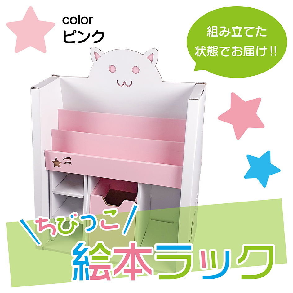ダンボール ラック 収納 ピンク 軽量 段ボール 日本製 ダンボール箱 通販 絵本 おもちゃ キッズコーナー 保育園 ワン サイズ 段ボール箱