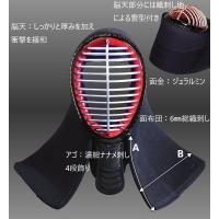 面:ジュラルミン面金 布団 織刺し具の目刺しナナメ揃え・ナナメカット仕様 脳天:織刺し地雲型付き アゴ ヘリ紺合皮・濃紺ナナメ刺し・4段飾り