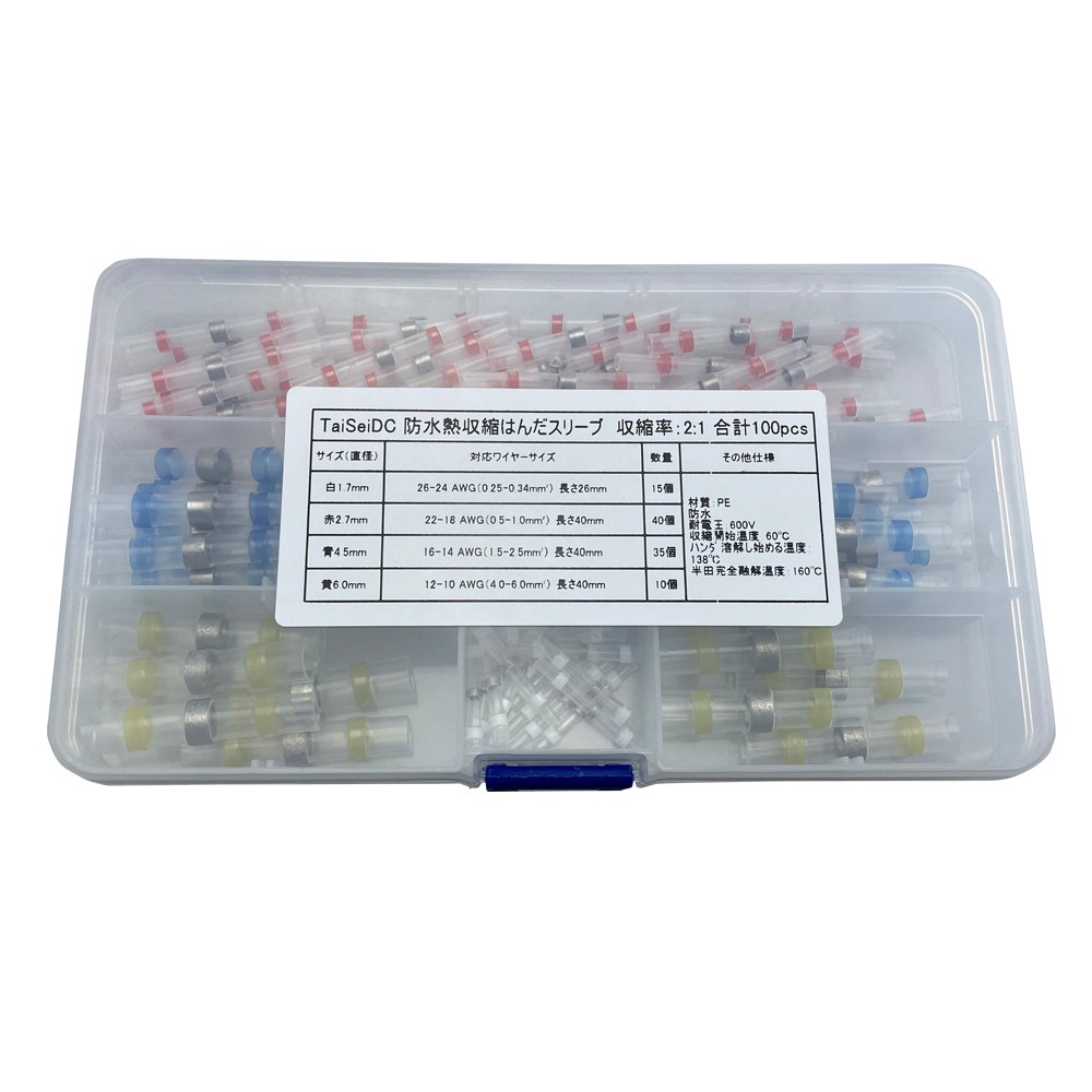 TaiSeiDC 防水はんだスリーブ 4色セット100個 ケース付き 熱収縮連結コネクター