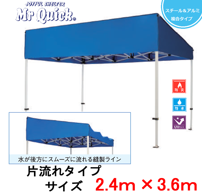ミスタークイック KT-23 2,400×3,600mm 片流れタイプ スチール・アルミ複合タイプ 部品一体型 かんたんテント