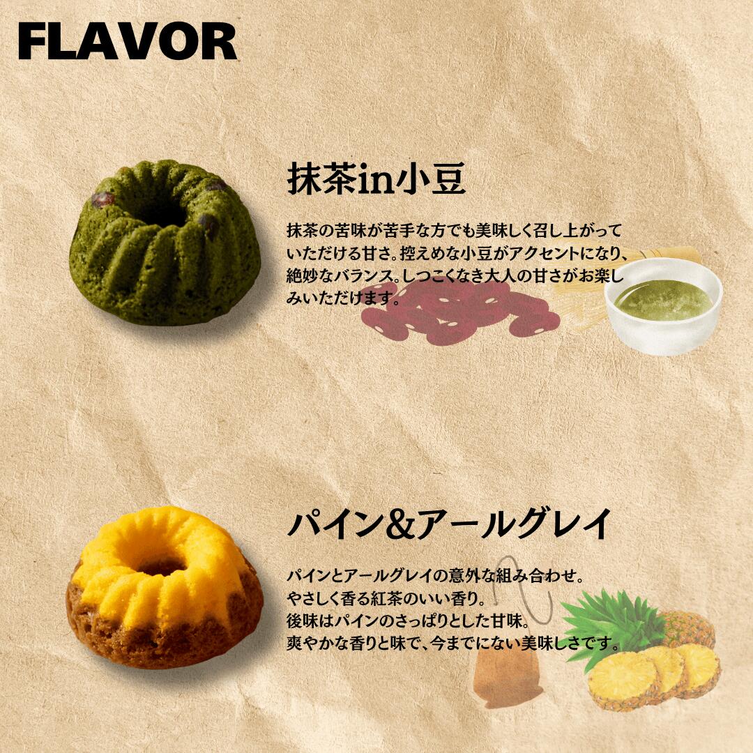 【抹茶in小豆】液全卵(国内製造)、砂糖、小麦粉、小豆甘納豆、クリームチーズ、ショートニング、黒糖蜜、マーガリン、抹茶、クロレラ末/膨張剤、乳化剤、香料、着色料(カロチン)、(一部に卵・乳成分・小麦・大豆を含む)