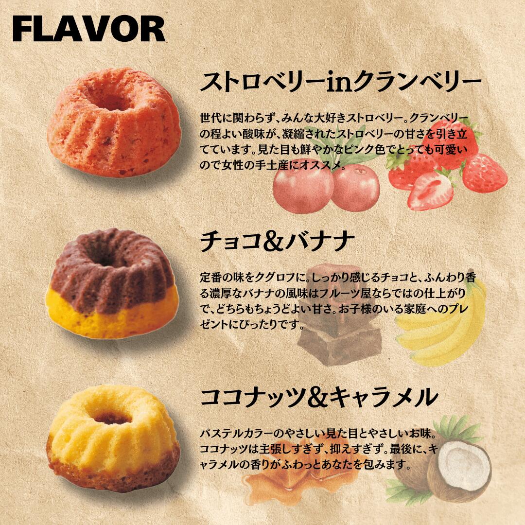 甘酸っぱい果実風味の生地と、それを引き立てるフレーバーの2層仕立て。