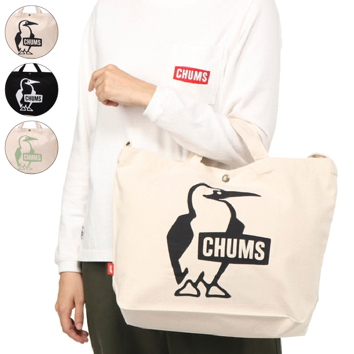 トートバッグとしても使える2way仕様、CHUMS定番コットンキャンバス素材のショルダーバッグ 〈素材特性〉ナチュラルでやさしい雰囲気のコットンキャンバスを使用。丈夫で扱いやすく、使えば使うほど馴染んでいく風合いの変化も魅力。通学やお買い物といった日常使いから、ピクニックなどちょっとしたアウトドアにも気軽に持ち出せます。