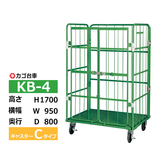 カゴ車 カゴ台車 ラスティーパレット 観音扉付き 底板スチール製 KB-4C 高さ170×横幅95×奥行き80cm (返品不可 個人宅配送不可)