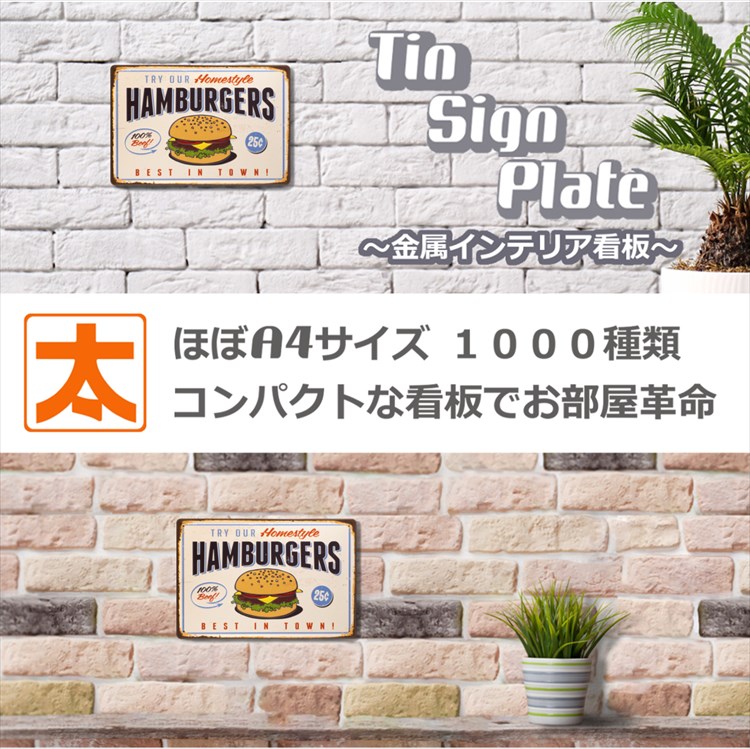 【特徴】:ブリキ 看板 ブリキプレート メタルサイン イラスト インテリア雑貨 サインボード サインプレート ニューヨークスタイル ブルックリンスタイル