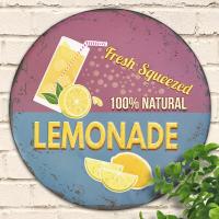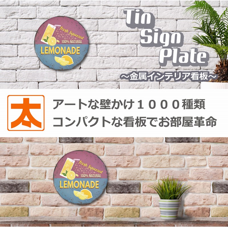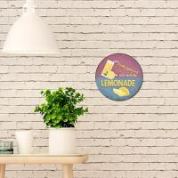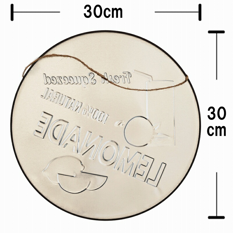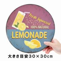 | 【ブリキ看板e30e レモン lemon 円盤型】 金属製の個性的インテリアパネル ピンやフックを刺しての壁掛け、立てかけ。どなたでも簡単にお飾りいただけます。 |