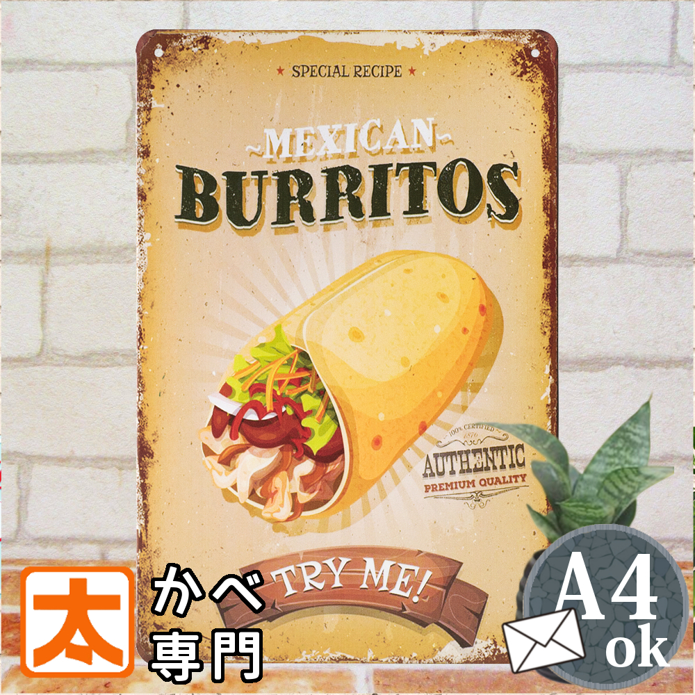 メキシカンフード ポスター ブリキ看板k ブリトー メキシコ料理 カフェ風インテリア 雑貨 タコス 絵画 イラスト 壁掛け アメリカン雑貨 アメリカ雑貨