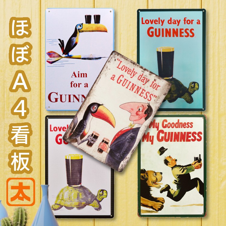 | 【ブリキ看板k ギネスビールm1】 金属製の個性的インテリアパネル ピンやフックを刺しての壁掛け、立てかけ。どなたでも簡単にお飾りいただけます。 |