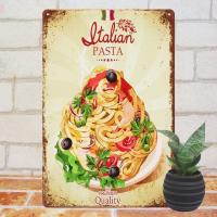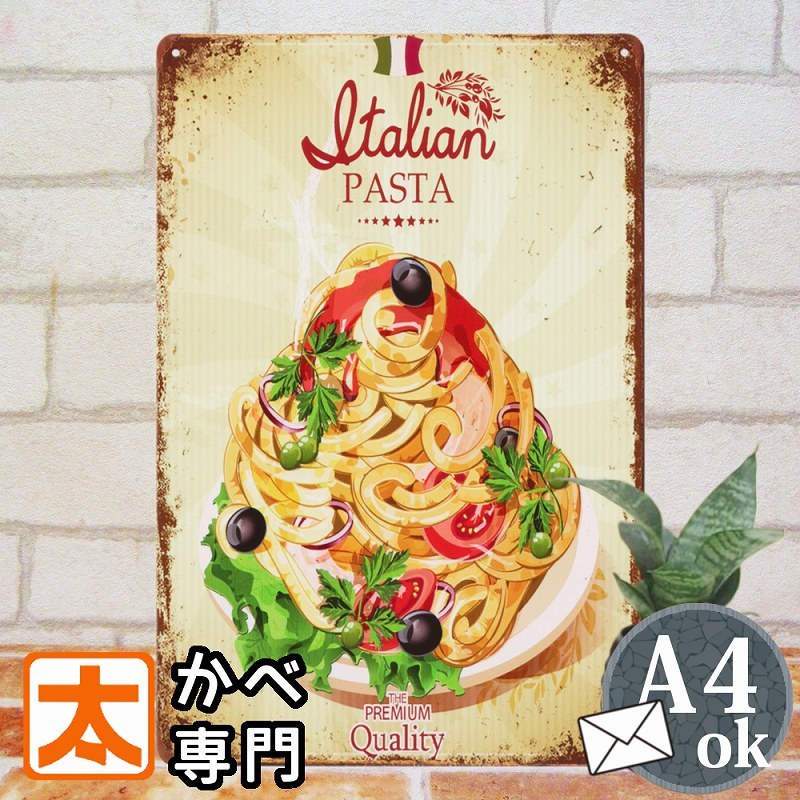 | 【ブリキ看板k パスタ 大盛 食べ物】 金属製の個性的インテリアパネル ピンやフックを刺しての壁掛け、立てかけ。どなたでも簡単にお飾りいただけます。 |
