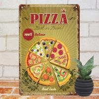 | 【ブリキ看板k ピザ イタリアン】 金属製の個性的インテリアパネル ピンやフックを刺しての壁掛け、立てかけ。どなたでも簡単にお飾りいただけます。 |