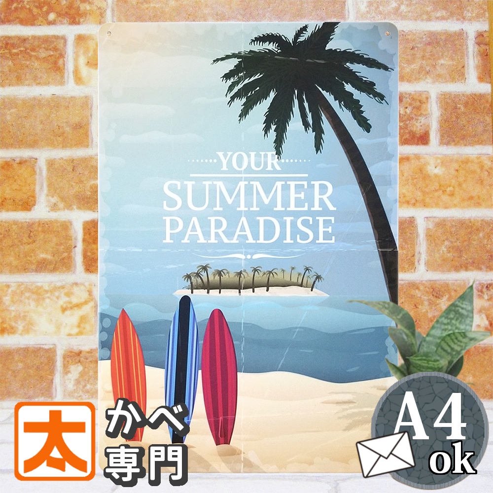 ブリキ看板 k サマーパラダイス 海 ポスター 絵 壁掛け インテリア雑貨 アートパネル ハワイ雑貨 ハワイアン雑貨 ヤシの木 サーフィン おしゃれ アメリカン雑貨