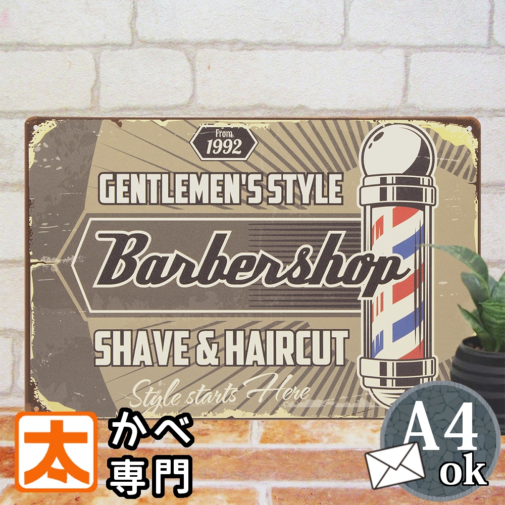 ブリキ看板 s バーバー gs ポスター 絵 壁掛け インテリア雑貨 アートパネル イラスト barber サインポール 理髪店 美容院 アメリカン雑貨 おしゃれ モダン