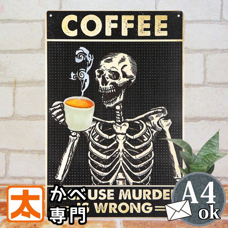 ブリキ看板 s 骸骨 ガイコツ カフェ コーヒー ポスター 絵 インテリア雑貨 アートパネル ドクロ スカル アメリカン雑貨 イラスト 絵画 おしゃれ モダン メール便