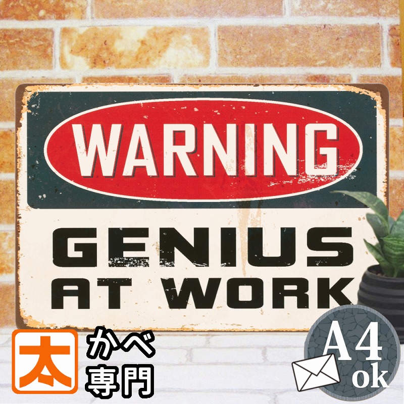 | 【ブリキ看板k 警告 warning】 金属製の個性的インテリアパネル ピンやフックを刺しての壁掛け、立てかけ。どなたでも簡単にお飾りいただけます。 |