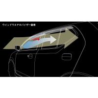 −ウィンドウエアロバイザー装着 (ウインドウを適正位置に下げた状態)特長的なエアロフォルムにより、側面を流れる走行風を捉え負圧を発生させる。その負圧作用でダクト部/ウインドウ開口部から車内の空気を強制的に排出させる。また、バイザー下端部に整流用のゴムモールを設け、負圧の巻き込みによる車内への再流入を防止する。