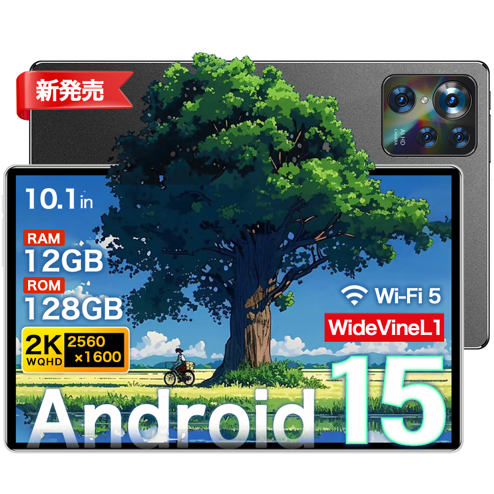 タブレット PC 本体 Android15 10.1インチ 12+128GB 2K WQHD wifi 5G 動画視聴 ネット授業 在宅勤務 8800mAh Bluetooth GPS 通話対応 NETFLIX 人気 2025最新作