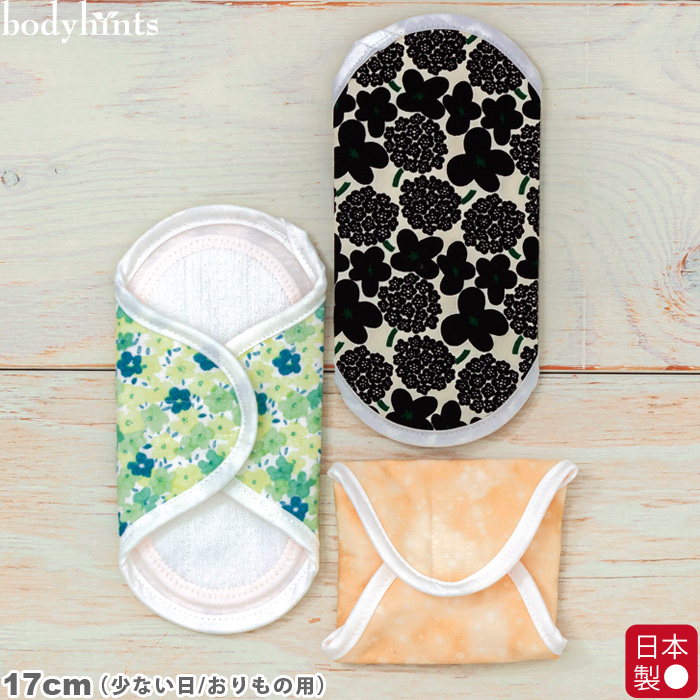 ボディヒンツ日本製の布ナプキン「エコナップ」おりもの用・少ない日用の17cmサイズです。