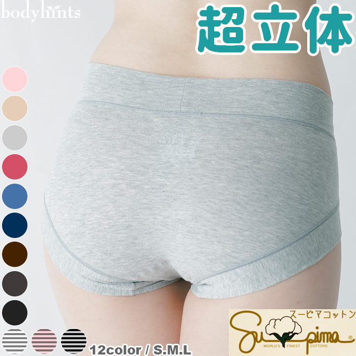 最高級綿スーピマコットン素材を贅沢に使用!ボディヒンツ人気No.1の超立体ショーツ!響きにくいやや浅ばきショート丈タイプ。