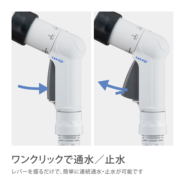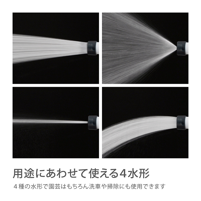 散水ノズルは軽くコンパクトな手のひらサイズでありながら、水形は4タイプに切り替えられます。