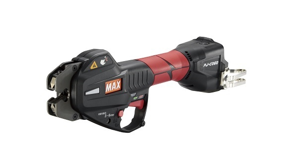配筋作業で使用するワイヤーメッシュ(溶接金網)の切断に。MAX PJ-C060は充電式で、電源の取りにくい現場でも使いやすいメッシュ筋カッタです。切断能力は直径3-6mm、直径6mmは2本同時切断に対応。18V装着時の切断時間は約0.6秒、14.4V装着時は約0.7秒(いずれも目安)。電池パックと充電器は別売、キャリングケースなどが付属します。