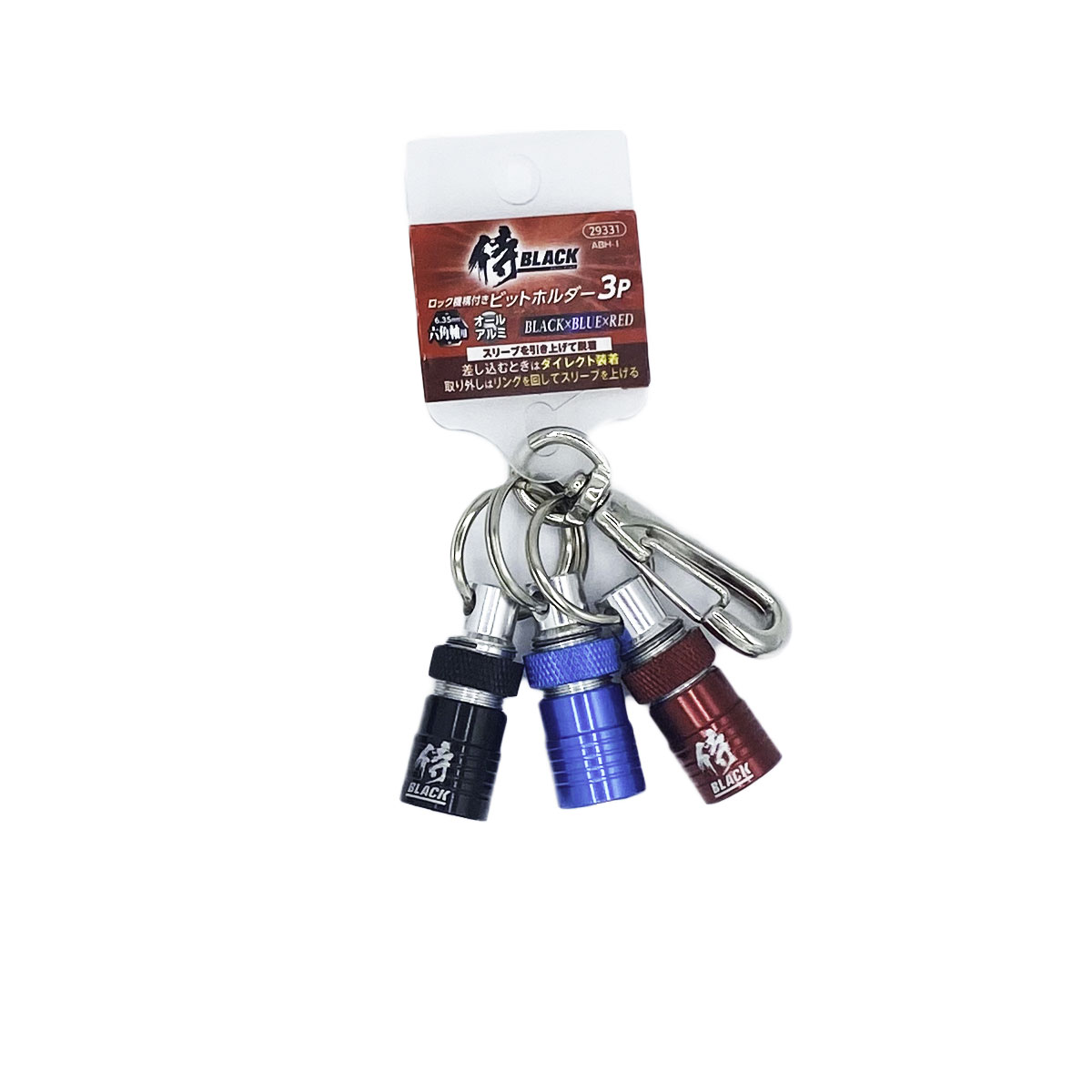 侍BLACK ロック機構付き アルミビットホルダー 3P ブラック×ブルー×レッド 3色セット ABH-1 29331 落下防止