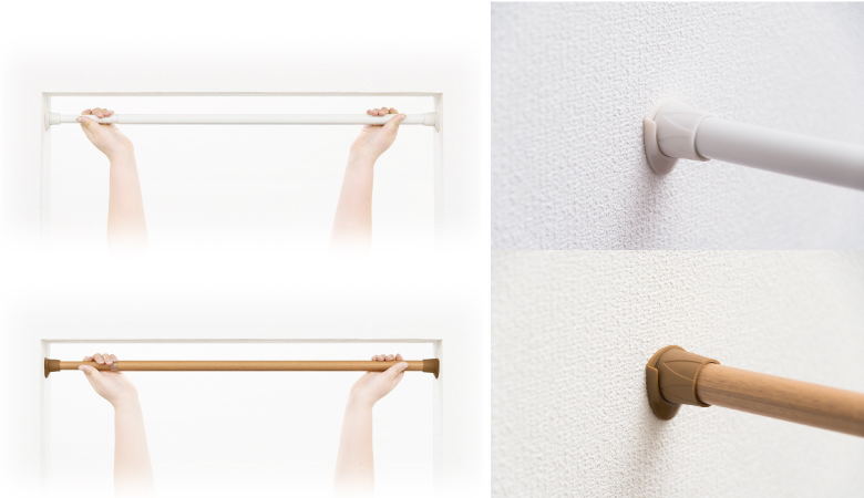 ※強力につっぱって取り付けますので、取付面の下地がしっかりしている所で取り付けてください。