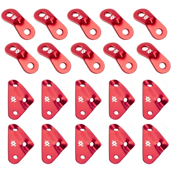 自在金具 アルミ製 三角 AVOFOREST ロープ長さ調整 ロープテンショナー 収納用ワイヤーホルダー付 12個入り ロープ止め金具 ロープ張り用 テントアクセサリー アウトドア キャンプ テント (赤色プレート型10個+三角10個)