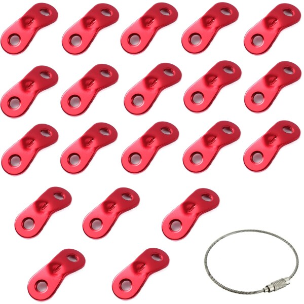 サムコス アルミニウム 自在金具 ロープ長さ調整 アウトド アキャンプ テント 5mmまで対応 20個セット 収納用ワイヤーホルダー付 (赤い色)