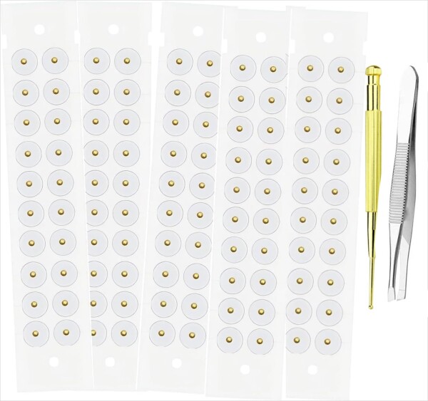 | 商品名 | 100個のビーズ、耳針ジュエリー、チタン耳針ジュエリーセット、ゴールドビーズ、シルバー、耳針ステッカー、ピンセット、経穴確認スティック |