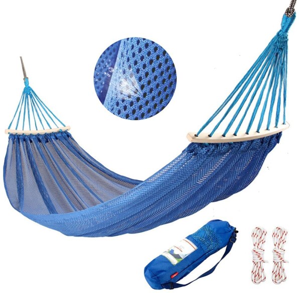 DKAEBLC ハンモック パラシュート 転倒を防ぐ 1-2人用 耐荷重300kg 肌触り良い 折りたたみ メッシュネット 通気性 快適 サポートロッドデザイン 室内/アウトドア/キャンプ 収納袋付き