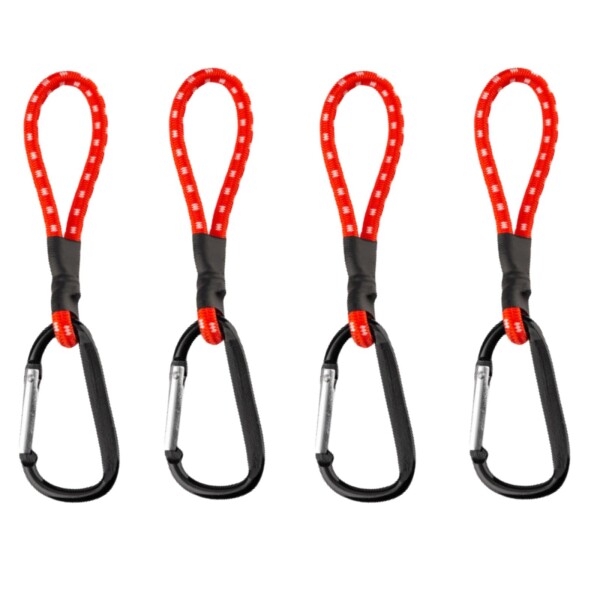 ストレッチコード カラビナ テントフック ゴム ストレッチコードフック 弾性ロープ 耐久性 テント固定用キャンプ 4本セット (レッド&ホワイト)