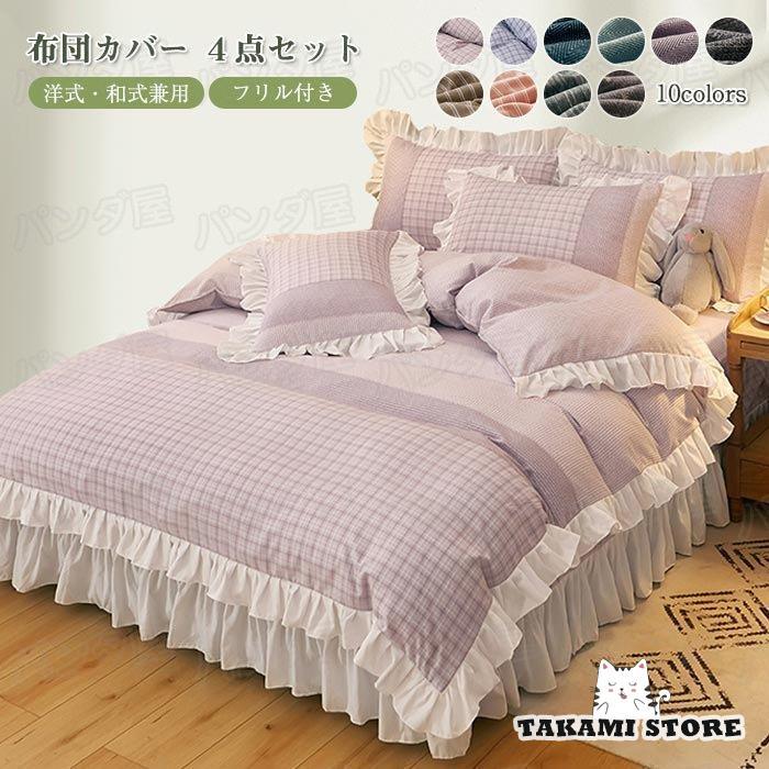 姫系 布団カバー ダブル 4点セット 寝具カバー セット 掛布団カバー 布団カバー おしゃれ 可愛い ベッドシーツ フリル付き ベッドスカート