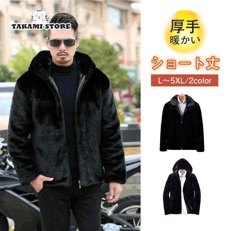 ファーコート メンズ 毛皮コート ショットコート フェイクファー アウター 高級 おしゃれ 上着 暖かい 防寒 冬服 秋服 新作