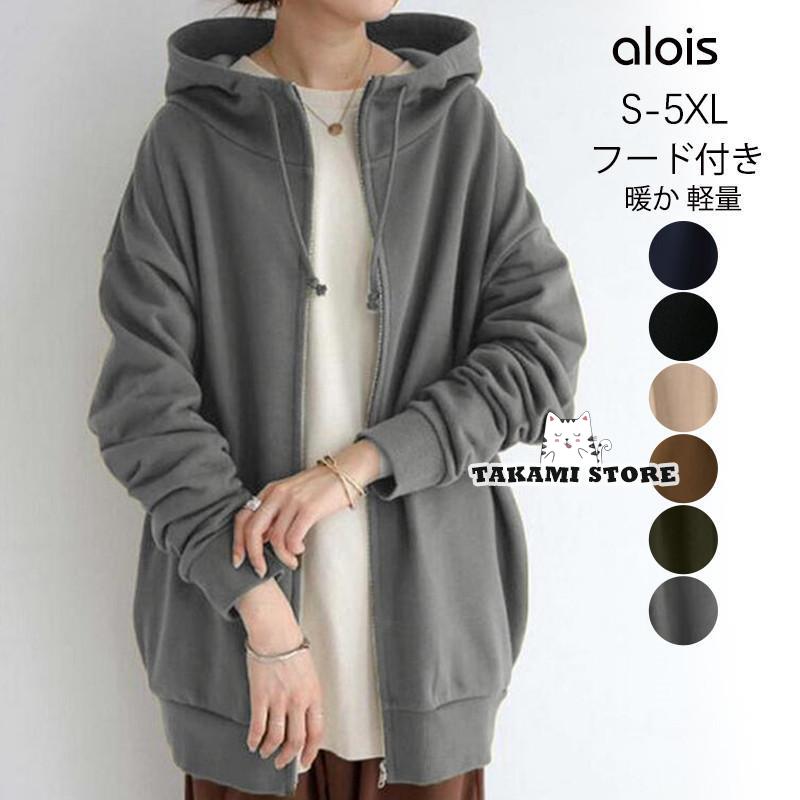 パーカー レディース ロングパーカー アウター ロング丈 ゆったり 裏起毛 あったか トップス 無地 秋冬 ジップアップ 大きいサイズ 通勤 シンプル