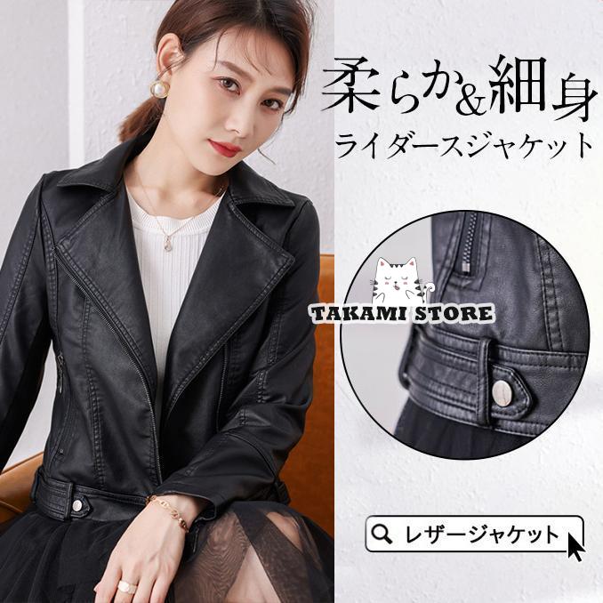 ライダースジャケット レザージャケット レディース 革ジャン テーラードジャケット バイクウェア 細身 PUレザー 春 秋 冬アウター
