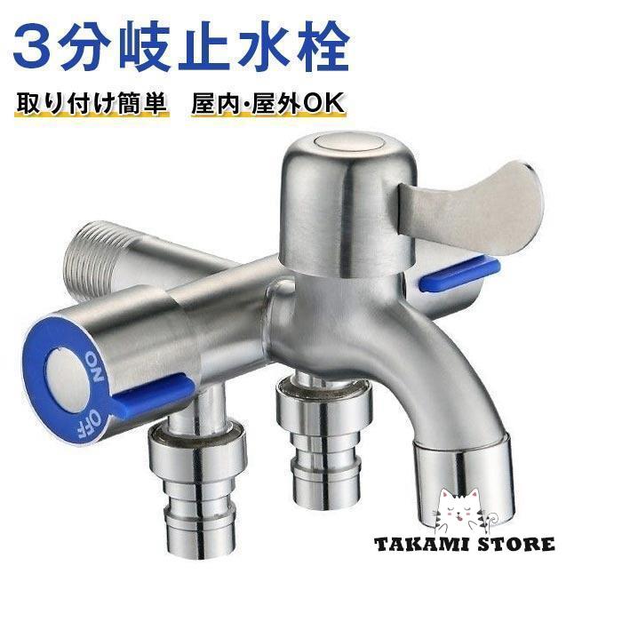 爆買 分岐蛇口 洗濯機用水栓 3分岐止水栓 ステンレス製 三股蛇口 洗濯 お風呂 洗面所 浴室 ベランダ ガーデン 3口 蛇口