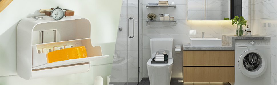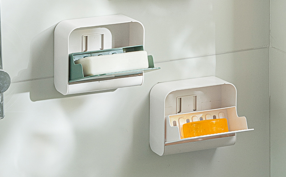 【フタ付き】使用しないときは、フタを閉めることで省スペースになり、防水で汚れに強く、石鹸を清潔に保ち、石鹸を長持ちさせます。浴室やキッチンをより広く、清潔でスタイリッシュに見えます。