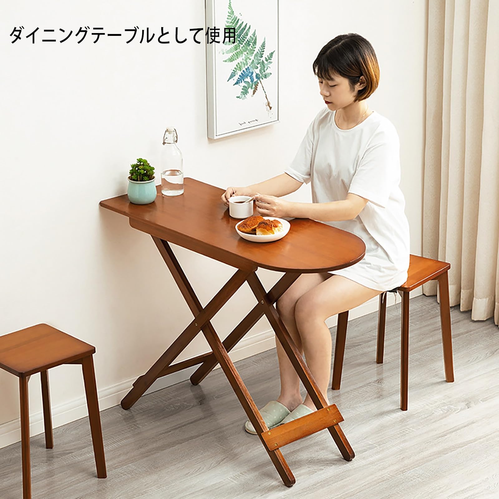 家庭用のダイニングテーブルは竹で作られており、しっかりと支えられています。小さなテーブルの高さは75cmです。ソファに座って作業したり、壁に寄せて使用したりするのに便利です。