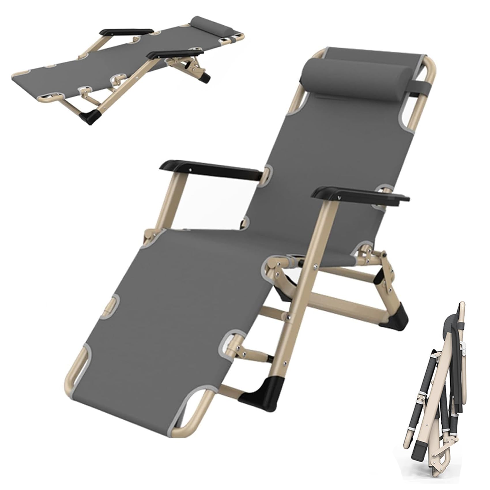 【枕付きサマーベッドの利点ト】枕付きサマーベッド5段階に調整可能です。 脚部は3段階、背もたれは2段階に調節可能です。寝転んで座ることもできる多機能チェアです。滑り止めフットパッドが床を傷から保護し、転倒を防ぎます。取り外し可能な枕は頭または腰をサポートし、快適な睡眠を提供します。