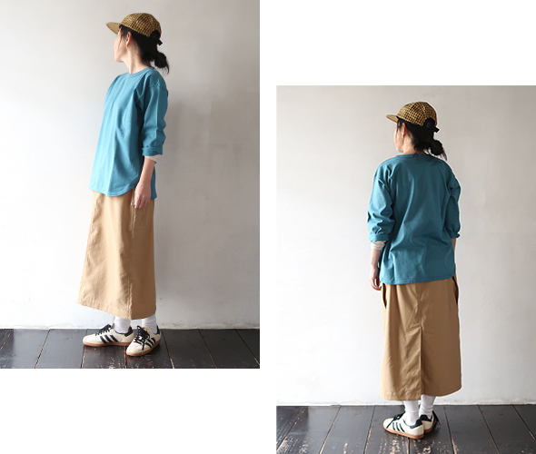 柔らかく心地良い素材感です。少しだけゆとりを感じますが、大きいサイズ感ではなく、すっきりとしています。