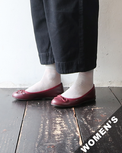 ベーシックアイテムとして重宝しそうなREMMEのバレエシューズ。深みのあるボルドーカラーが華を添えます。山羊革を使用しており、軽量で柔らかいながら、型崩れが起こりにくいです。クッション性のあるゴムソールに1cmのかかとのついたフラットソールで履き心地がとても良いです。
