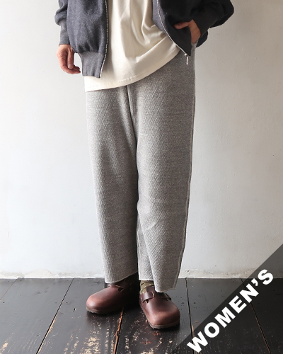 ムラ感たっぷりの糸を使用することにより、古着のような柔らかな表情に編み立てられたパンツ。ハニカム柄の組織で編みたてたサーマル素材は横に緩みにくく、 長くご愛用頂ける仕上がりとなっています。