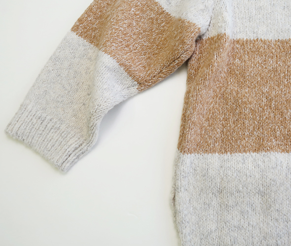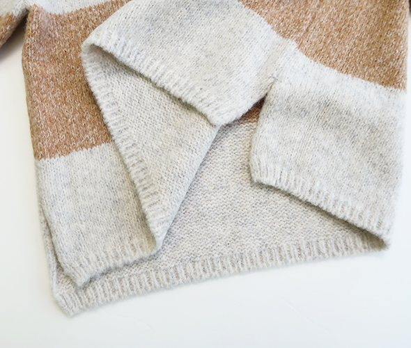 着るだけで雰囲気のあるかわいらしいニットです。袖のリブは長めですので、折り返して着てもかわいいですね。