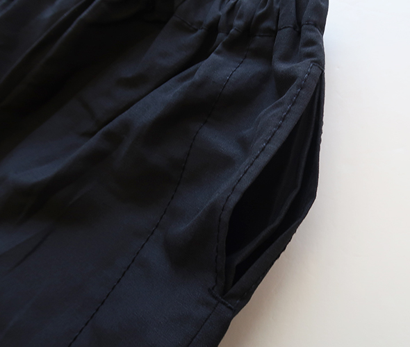 太めのシルエットでSサイズで股下がやや短め。上品な素材感なので、合わせるものによっていろんなシーンで活躍しそう。