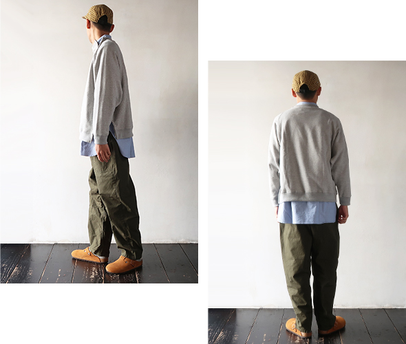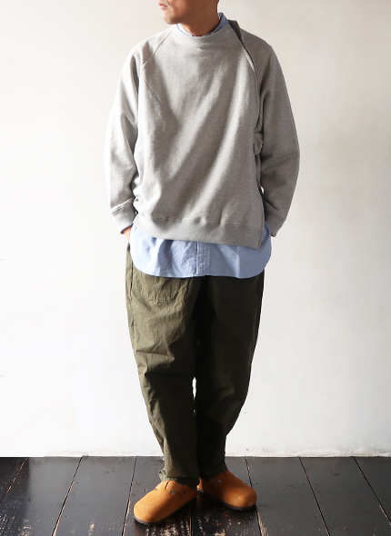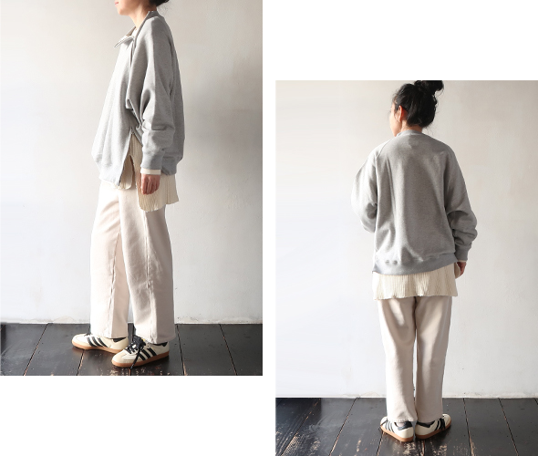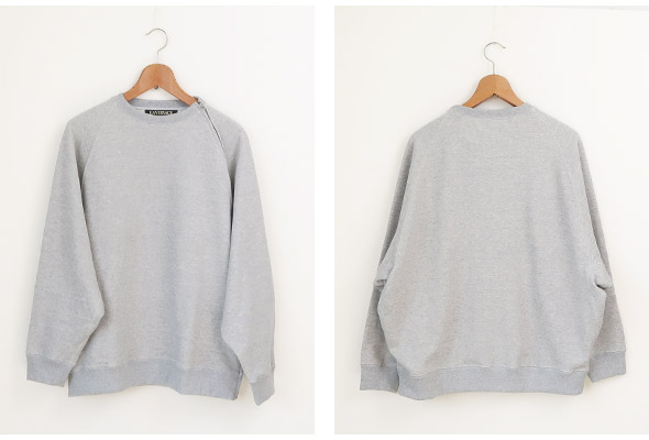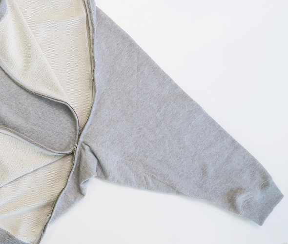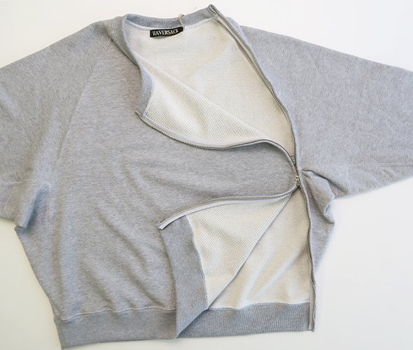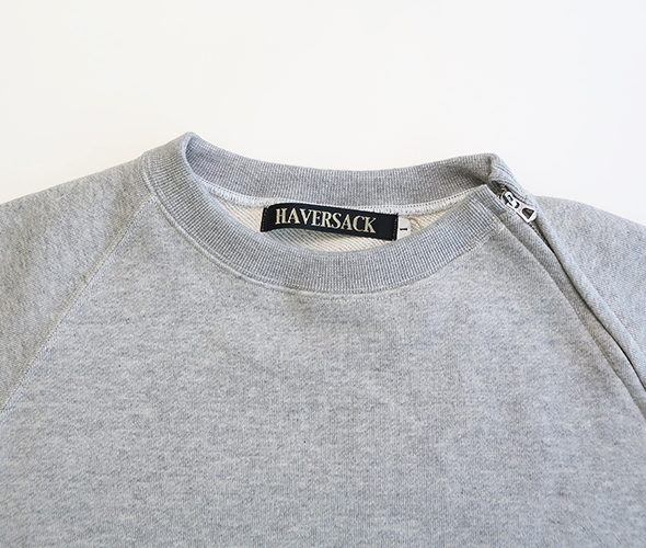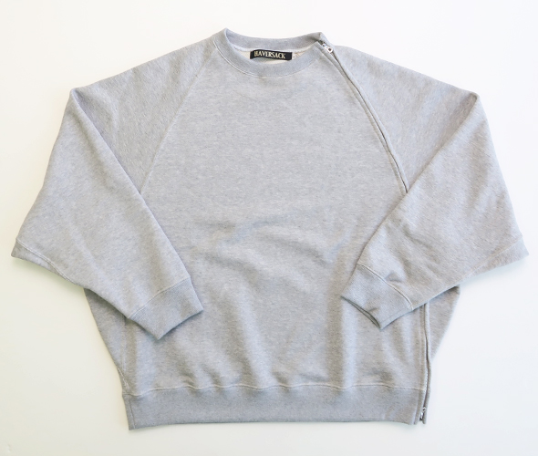 HAVERSACKの新作オーバーサイズスエットシャツ。衿からラグランシームを通して裾までフルオープンできる仕様となったデザイン性が高い一着。ZIPの開け方で様々な着方のアレンジが楽しめる逸品です。