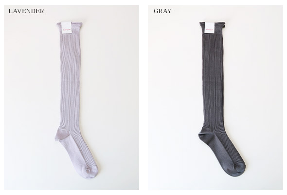 細めのリブと、履き口にさりげなく施した装飾が特徴の、シルケットコットン素材のハイソックス。丈夫でしなやかな質感で、さらりとした履き心地、足元をすっきりと見せてくれます。カジュアルにも、きれいめにも、普段使いにおすすめのソックスです。