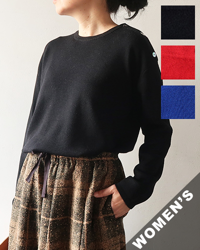左肩にあしらったボタンがアクセントのクルーネックニット。ハイゲージニットなので凹凸が見立たず滑らかですっきりとした印象。体のラインを拾わない程良くゆったりシルエットでブラウスやカットソーとの重ね着もおすすめです。